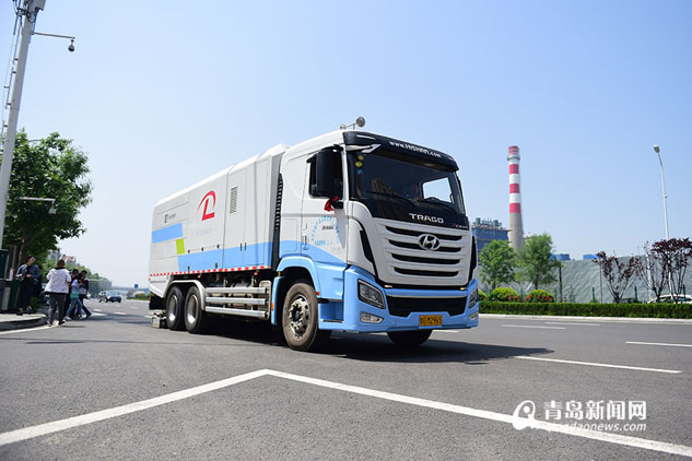 2018年山東省首輛道路污染清除車在李滄區(qū)上崗,開始對車輛往來多、道路污染較嚴重的環(huán)灣路進行清掃作業(yè)。