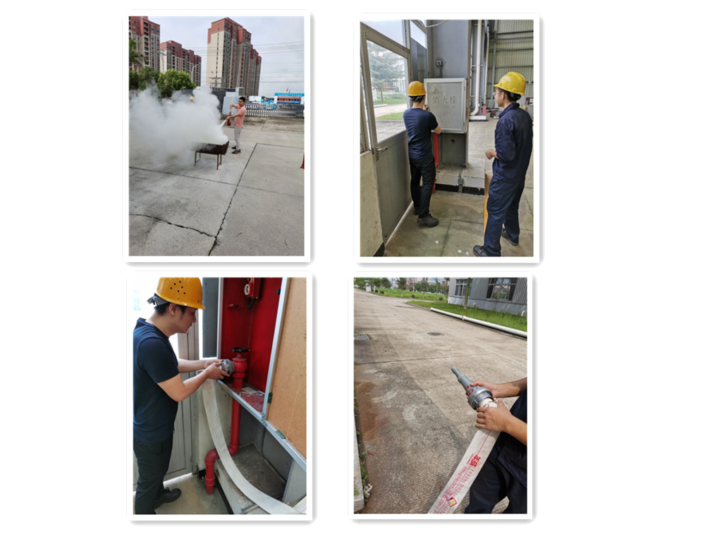 1、2021年7月26日上午9:00分左右,公司廠內(nèi)制造車間出現(xiàn)火情,現(xiàn)場應(yīng)急人員立即組織消防逃生及滅火,并立即報告應(yīng)急辦公室,由應(yīng)急辦公室立即向應(yīng)急指揮部報告。應(yīng)急指揮部根據(jù)初期火情控制情況及預(yù)警級別,確認是否啟動應(yīng)急響應(yīng)。若啟動應(yīng)急響應(yīng),相關(guān)部門配合做好應(yīng)急響應(yīng)工作,待達到應(yīng)急終止條件后,終止應(yīng)急響應(yīng)。最后對現(xiàn)場進行洗消、并進行工作總結(jié)與評估。消防逃生及滅火演練圖片如下: