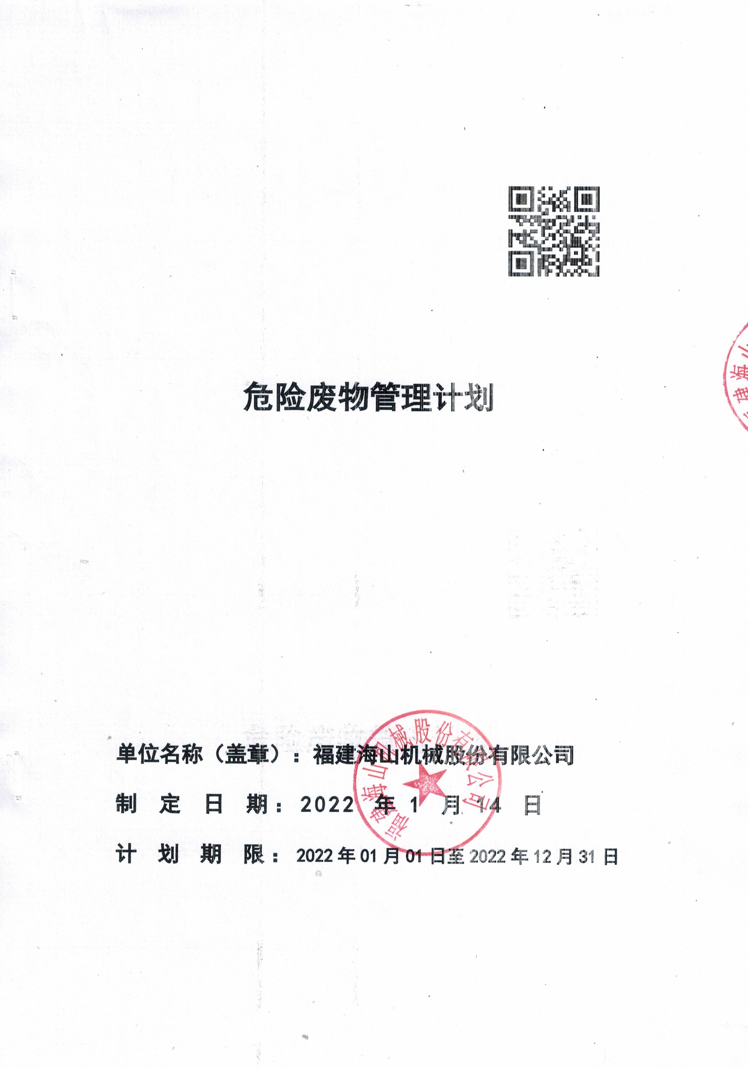 我司于2022年01月14日制定了《2022年度危險廢物管理計劃》,于2022年01月17日提交莆田市荔城生態(tài)環(huán)境局備案。 如下圖:
