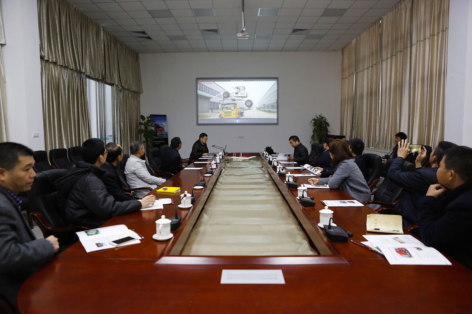 Accompanied by executive vice president Zhang Qiuxian, Lv Zhengshan and his entourage watched live demonstrations of Hishan’s intelligent mechanical products –China’s first non-destructive excavation suction vehicles,road pollution removal vehicle, walking platform and other innovative products. Zhang Qiuxian told them that Hishan have all independent intellectual property rights of above-mentioned products, including efficient turbine technology, intelligent control systems and other patented technology.These products have got National “CCC” certification.